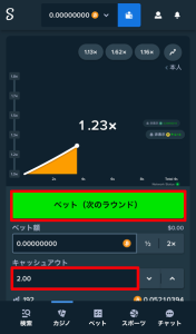- オートキャッシュアウト: 事前に指定した倍率に達した場合、自動的に出金する設定です。これにより、リスクを抑えつつ安定したリターンを得ることが可能です。